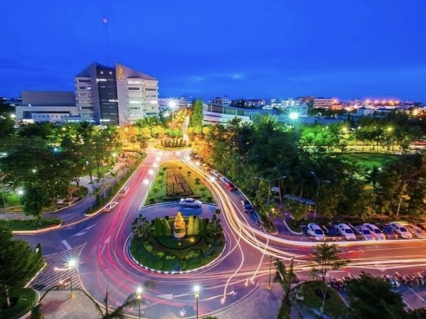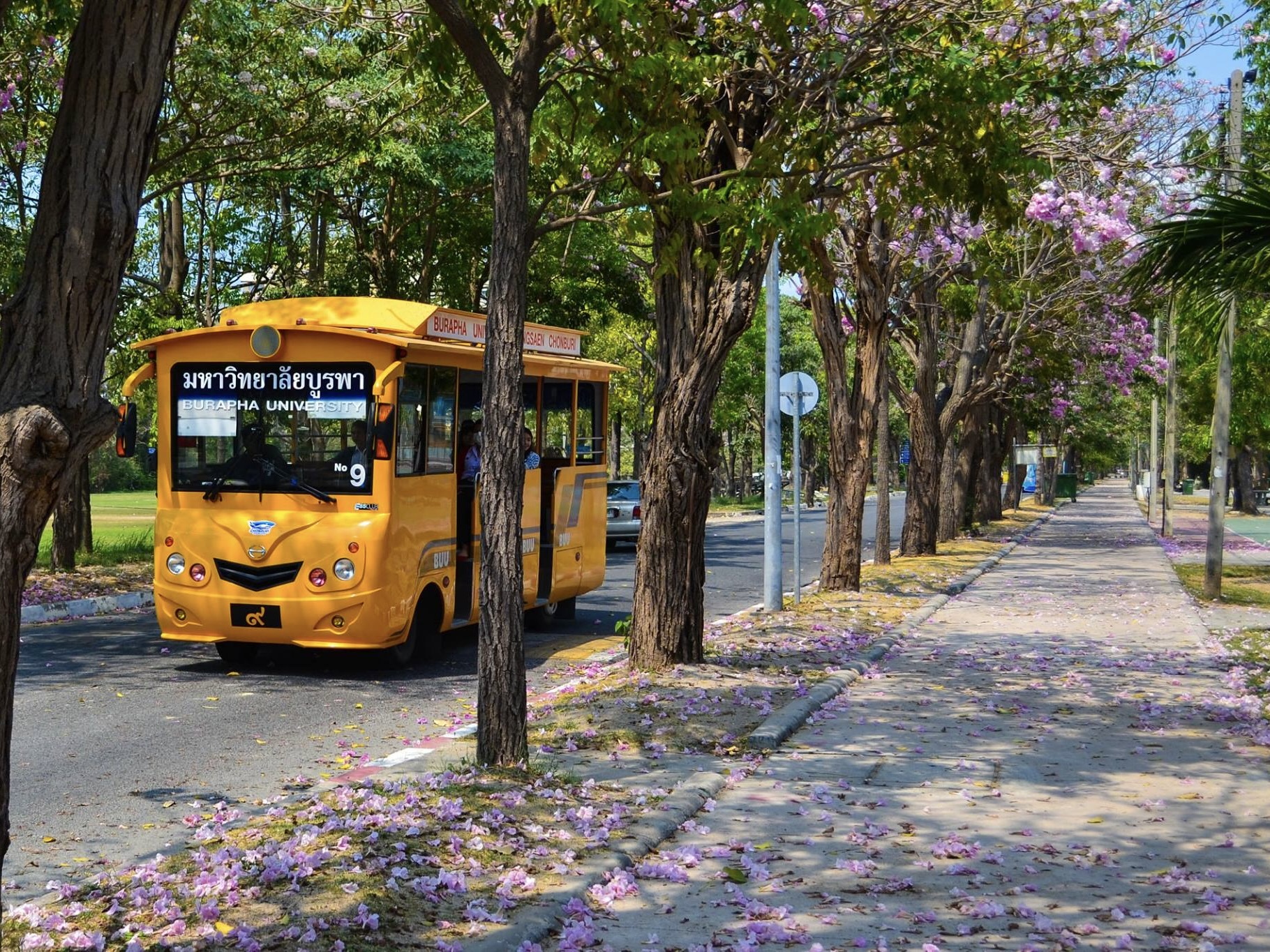 is situated in Saen Suk, a coastal town in Chonburi Province, eastern Thailand, approximately 85 kilometers southeast of Bangkok. The main campus lies adjacent to Bangsaen Beach, a popular seaside destination along the Gulf of Thailand.